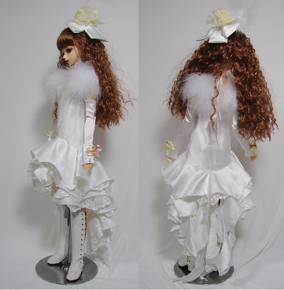 スカート部分は共のサテンとレースを2重にしたものを3段重ねました。 |